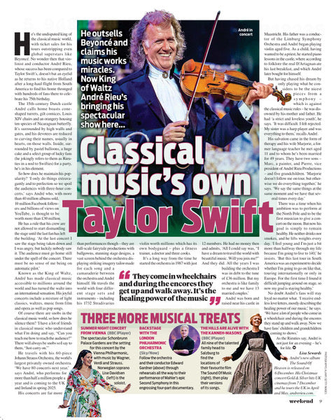 "Known as the King of Waltz, André has made classical music accessible to millions around the world. He outsells Beyoncé and Taylor Swift in concert ticket sales, making him the undisputed king of the classical music world... His concerts are far more than performances; they are full-scale fairytale productions with ballgowns, stunning stage designs, and a vast screen behind the orchestra displaying striking imagery.