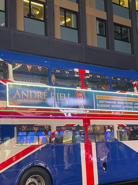 UK Outdoor campaign (Christmas billboard bus) starting December 6th 2024 in London and driving to locations where André Rieu is played through the speakers.