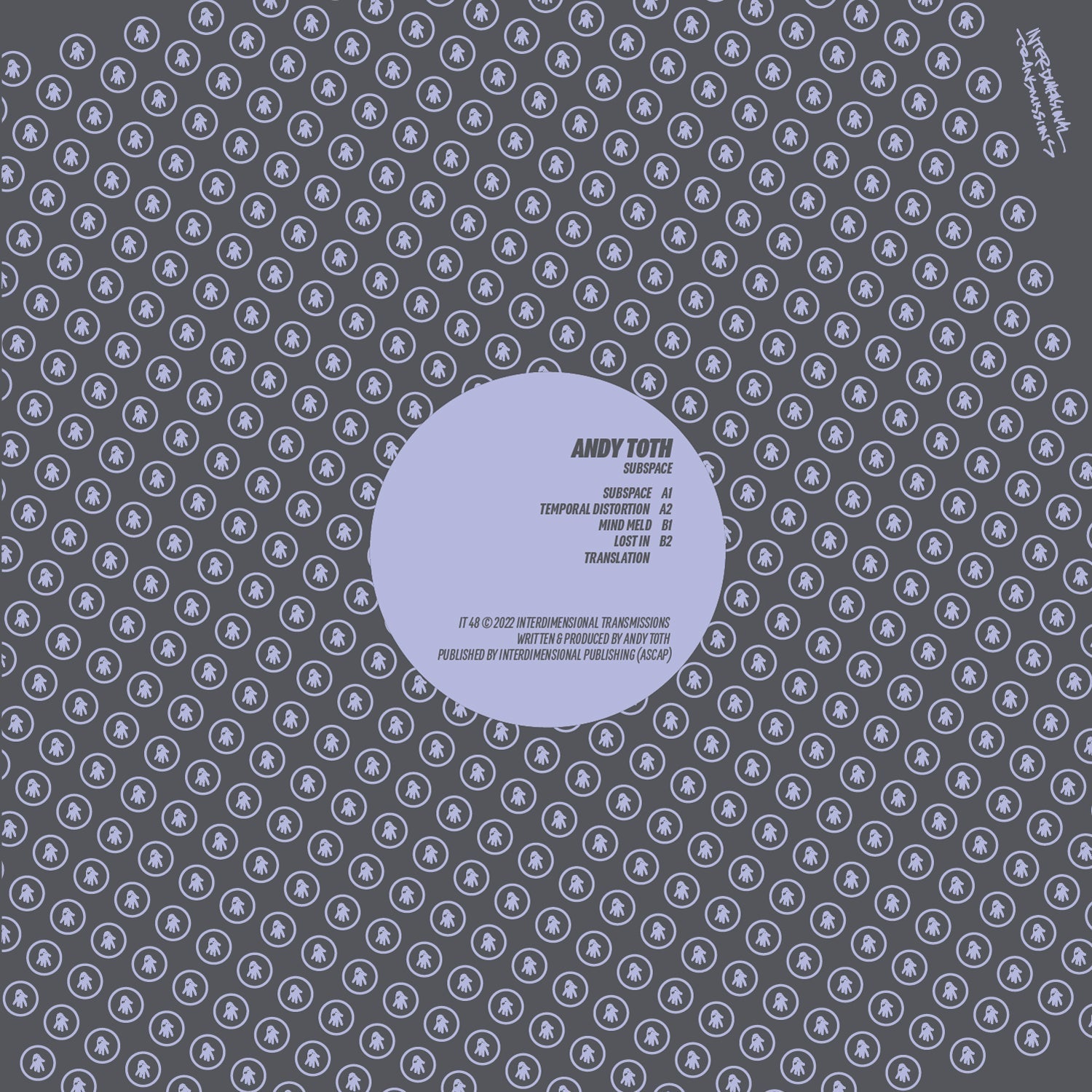 Fierce interdimensional acid tracks on the latest outing from the I.T. HQ in Detroit!! Andy Toth casts a long shadow in the Detroit scene, from being co-founder of the Detroit Grand Pubahs to working as an engineer and mixer, he's worked on so many records that you know but in his egoless way, didn't know he was part of. Being the co-author of "Sandwiches" took him around the world, but more importantly, it was the hold music for Mudgie's, a legendary Detroit Deli run by another long-standing denizen of the Detroit underground, Greg Mudge. Greg Mudge was a true pillar of our techno community in Detroit, from showing us the venue for the first leaky roof No Way Back, to throwing his own events and supporting great people. One of those people was Andy Toth, who he was constantly pressuring to release his music, and this became a major theme of Greg Mudge's memorial. When Greg suddenly passed last September, some friends came in to DJ his memorial like Derek Plaslaiko. When it was Andy Toth's turn he played only his own productions and we were all just so blown away. Mudgie was always asking Andy "what's up with those tracks?" And this record is the answer, a testament to that thought, and to the deeply layered and detailed work of Andy Toth. Andy has created a uniquely dense Detroit Sci-Fi trip through sound, with elements of acid, electro, techno that result in an advanced and mature adventure in sound, reflecting his roots in the Detroit scene, but pushing it into new hypnotic futures, to boldly go where no one has gone before. Recommended!!