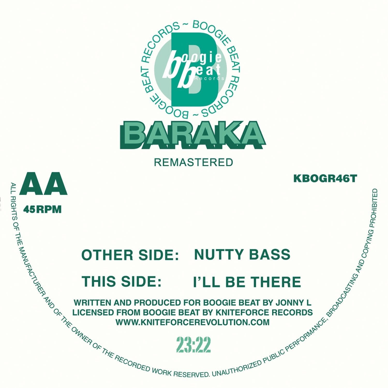 Boogie Beat Records and Kniteforce bring you one of the most sought after underground jungle classics ever. Jonny L is the legend behind the Baraka alias, and this EP has been sought after by many collector for years and years! There is not much more that can be said about this superb slice of old skool jungle, it’s a must have by any and every standard.