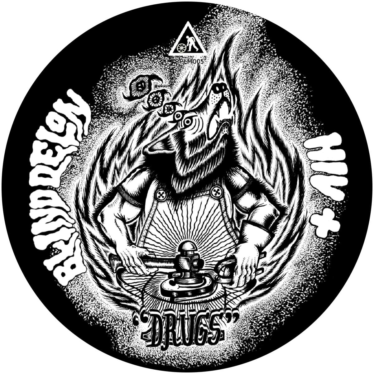 Toulouse-based trio Blind Delon like distorted basslines, dirty beats and cold synths. On that new post-punk-ebm-techno 4- tracks EP, "Drugs", they invite french industrial veteran HIV+ for his harsh lyrics and his smashed voice under the influence of psychotropic substances. Including a post-apocalytic remix from Russian producer Alexey Volkov!