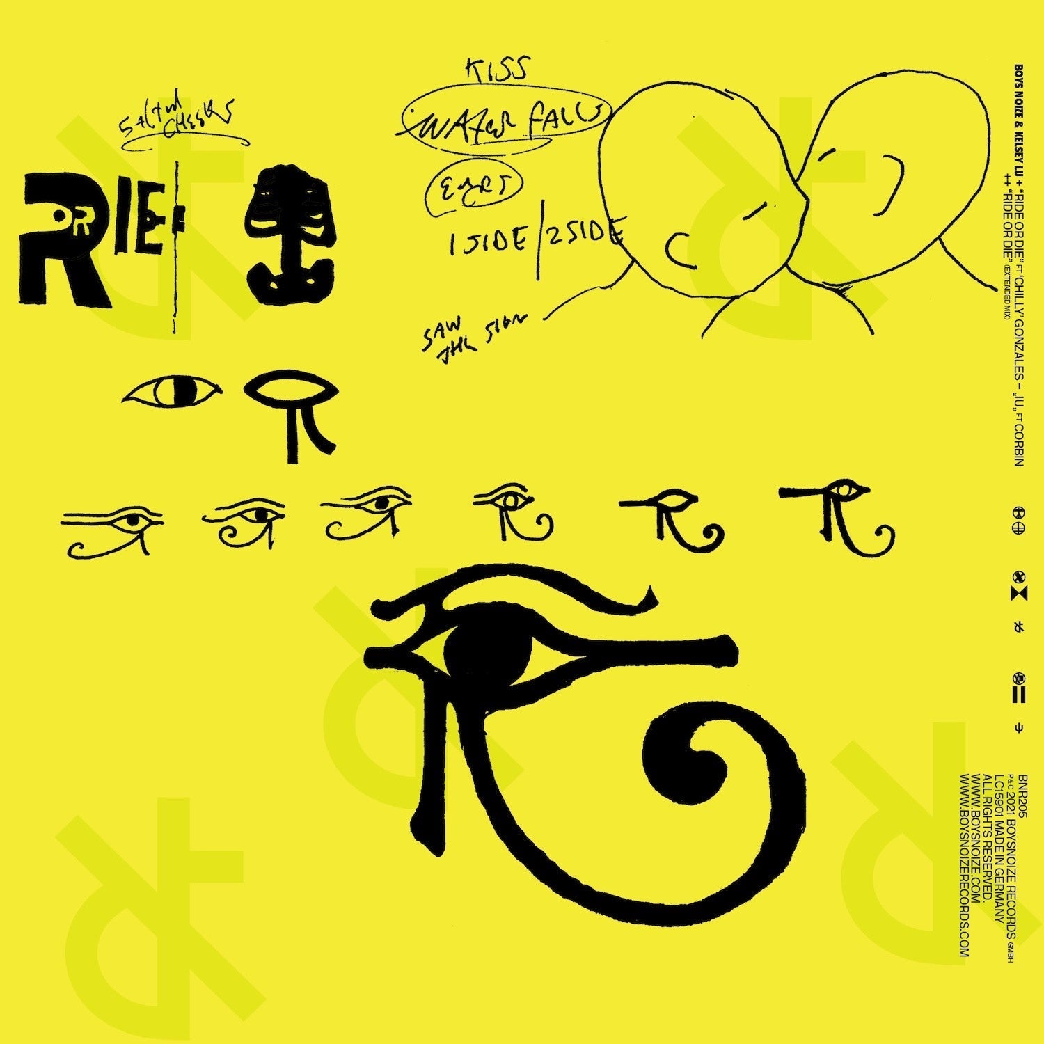 What else is there to do but lean into this propulsion? The ( - ) side, BOYS NOIZE "IU" featuring dark RnB innovator CORBIN, is moody but aggressive, with cavernous kicks pummeling under hi-tec breaks and hoovers at an overclocked, redlined tempo. This rocketing energy turns CORBIN's haunting looped vocals into a battle cry rather than a dirge, making "IU" the release to "RIDE OR DIE's" reflection. Both tracks share a frenetic tempo, boldly declaring that the energy of club culture will not falter, even when facing the myriad pressures of a world in distress.