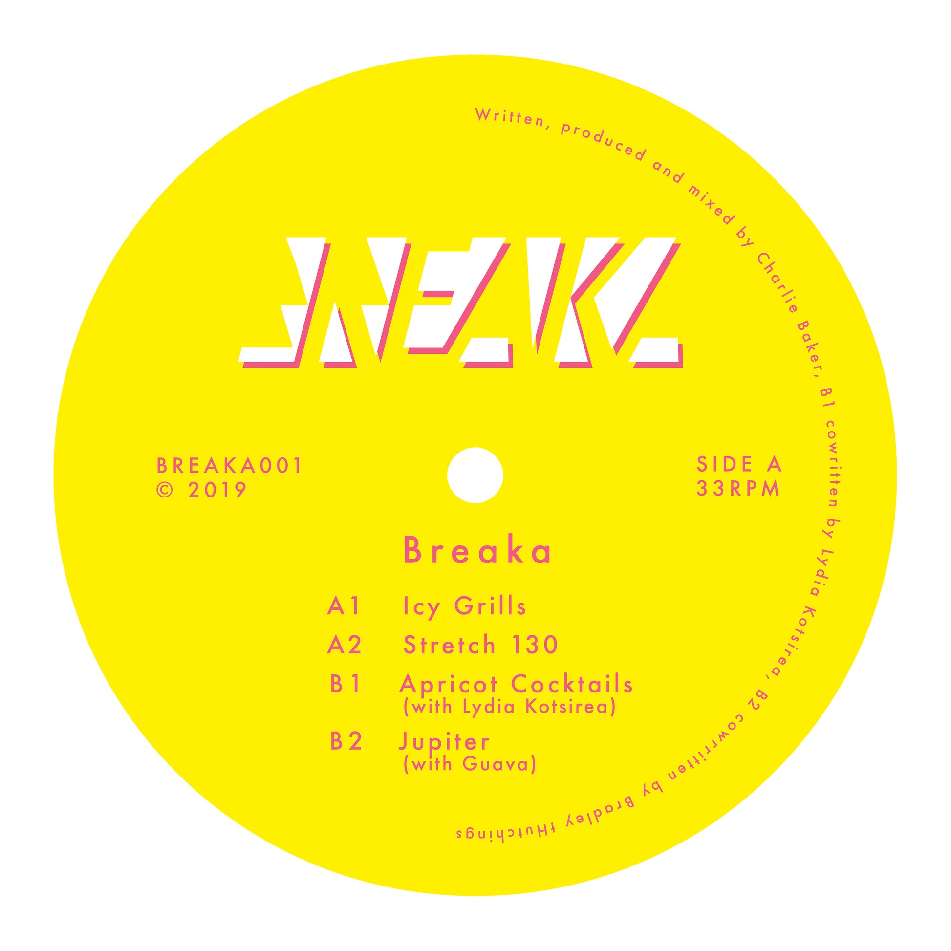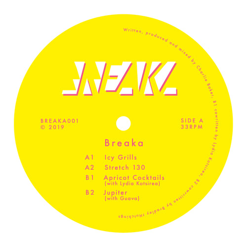 “This record is a special project for me. Releasing myself has allowed me to collect four tracks reflecting different sides of my musical world. ‘Breaka 001’ opens with ‘Icy Grills’, a classic Breaka style track based on Breaks, 808s and euphoric melodies. ‘Stretch 130’ is a portal into the world of Stretchy Dance Supply, a workout-based club night I co-created. It’s one to limber up and get down to. The B-side starts with ‘Apricot Cocktails’, a track inspired by the classic Broken Beat sound. I made the instrumental in 2018, but the track got a new lease of life when paired with vocals written and performed by soul diva Lydia Kotsirea. The EP comes to a close with another collaboration, this time working with producer and session guitarist Bradley Hutchings (Guava). I often open my sets with this one. I think you’re going to love it.”