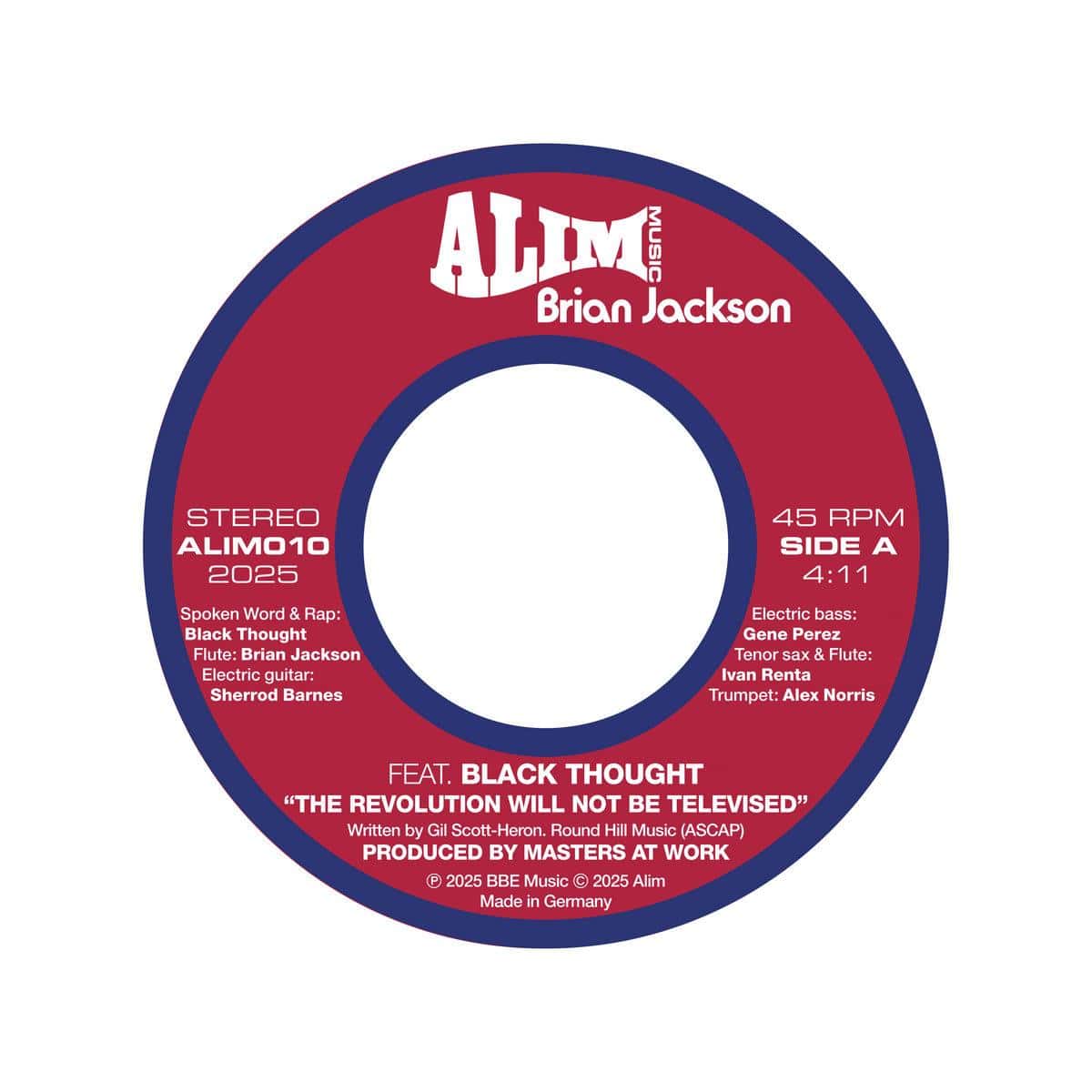 The 10th release on ALIM Music, a stone-cold classic, has been reborn. Gil Scott-Heron and Brian Jackson's The Revolution Will Not Be Televised, the iconic song of protest and Black Consciousness, has been reimagined and revitalised for a new generation. With new lyrics and vocal performance from Black Thought, a reworked and bassline-heavy production by Masters at Work, Brian Jackson has recreated an absolute masterpiece. Originally taken from Gil's poem as performed on his Small Talk at 125th & Lenox and then released as a proto Hip-Hop song featuring Bernard Purdie's drumming on the 1974 Pieces of a Man album, this new version updates the track's original powerful lyrics to include references to the propaganda of Fox News, social media tropes, live streaming, taking the knee and modern day consumerism. Delivered by Black Thought in his imitable style and accompanied by Brian Jackson's incisive jazz flute, these new lyrics represent a Black Liberation call to action for today's world. Louie Vega and Kenny Dope's production gives The Revolution Will Not Be Televised a dancefloor edge that embraces a Jazz Hip-Hop flow with the absolute clarity of the message. Taken from Brian Jackson's forthcoming and aptly titled BBE Music album, Now More Than Ever, The Revolution Will Not Be Televised will unite Boomers, Millenials and Gen-Z in its multi-generational cross-over appeal bringing the original Gorillas together with Neo-Soul and Hip-Hop heads of today.