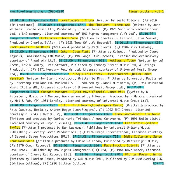 This was before most things we now take for granted were common on our dancefloors, radio shows or live streams. Those ubiquitous Euro Pop dubs, unclassics that aficionados play at the wrong speed, or private gems that have since been reissued to the moon and back? They very probably popped up on our collective radars via the medium of www.lovefingers.org first. Rightfully so, what started as a well-kept secret, became a go-to resource and mark of quality among enthusiasts, diggers, DJs, musicians and producers around the globe — the genre-bending mentality in turn re-coined the term “selector” — and inspired a generation the world over to delve further into record shelves, undoubtably contributing hugely to the wondrous, multi-faceted and open-minded musical language we now all speak fluently. While it remained niche, at its peak, www.lovefingers.org had upwards of 100K music freaks turning up daily, and ignited a global musical dialogue between people that were yet to be connected by today’s social technology. The site received countless letters of appreciation from rural kids with no access to record stores, acclaimed DJs, film directors, fashion houses, forgotten artists who were thrilled to feature among unexpected peers, soldiers who diligently tuned-in direct from their call of duty, even heroes of sample-scavenging culture like Coldcut who applauded, “…it just goes to show, when you think you’ve heard it all, you can always dig deeper.” The community around Lovefingers’ site was a call-to-action, gathering analogous minds and inviting them all to the same party, and on New Years Day 2010, after 999 Fingertracks and a plethora of (now classic) mixes, the site made a final post stating, “That's all folks!” The collective energy pivoted into the ESP Institute, a record label and art platform to champion new artists who emerged from this foundational community and as a catalyst to push the musical dialogue forward. Now, as the ESP Institute approaches its 10-year anniversary, we revisit the significant role www.lovefingers.org played in shaping where we are today.