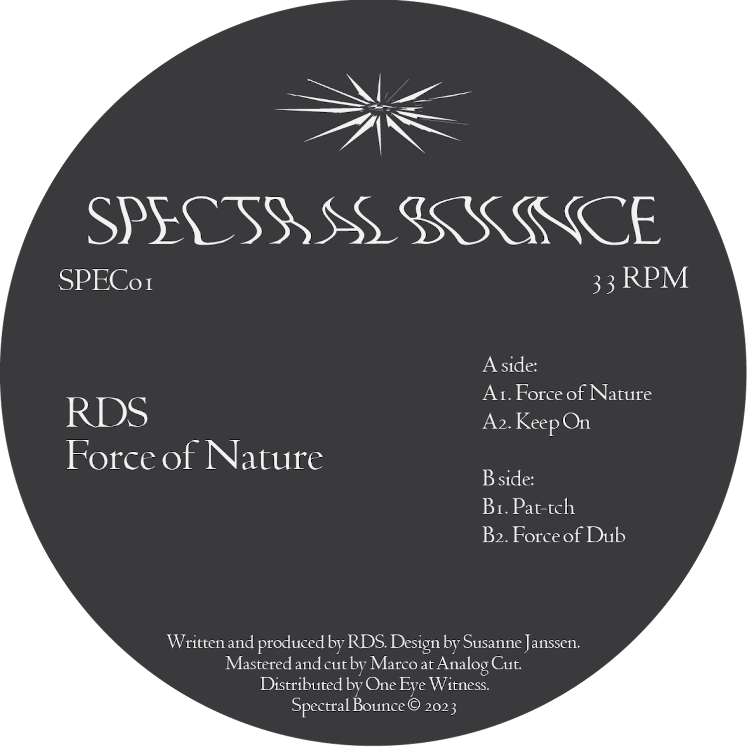 SPEC01 - Force of Nature - Is the fruit of the long-standing musical relationship and shared visions of producer and Selector RDS and Spectral Bounce, the perfect catalogue opener.