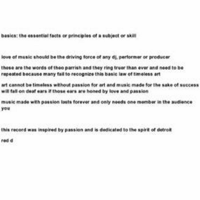 Belgian underground DJ/producer Red D continues his solo Red Basics quest with the second release in this series in which he explores a variety of sounds that make him tick, always drawing inspiration from his favourite city: Detroit. The A-side travels to the heartland of classic Detroit deep house, taking in deep chords, a pitched-down vocal sample and the subbest of bass antics making for a groove that can be enjoyed both on and off the dancefloor. On the B-side the melancholy of the continued longing for better days prevails, delivering a cut to make you think and sway at the same time. Electronic music for your mind, heart, body and soul.