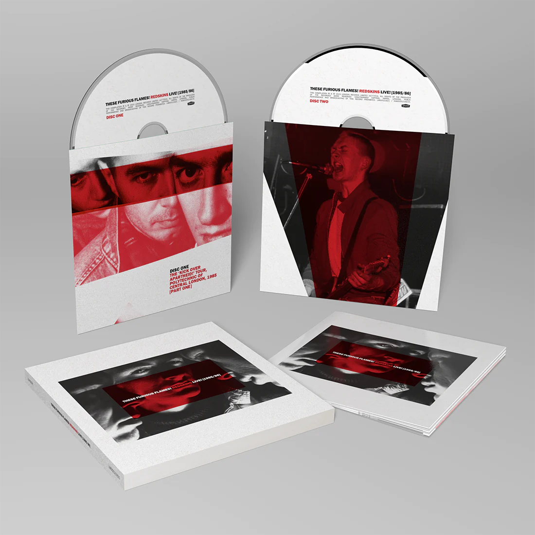 'These Furious Flames!' is a 25 track documentation of the energy, commitment and drive of the Redskins as that campaigning live act. Issued in 2xCD capacity wallet, double vinyl and digital editions, each format couples together a recording of the full set of the finale concert of their 1985 'Kick Over Apartheid!' tour - including guest appearances from Jerry Dammers and Billy Bragg - with the BBC broadcast tracks from their 1986 concert at the Town And Country Club.
