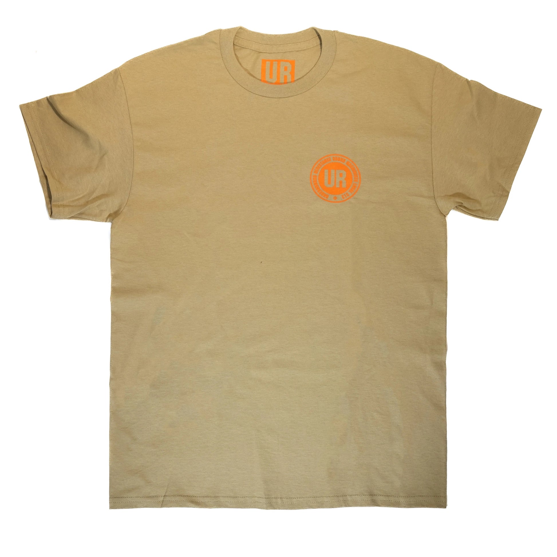Underground Resistance 'Workers' T-Shirt - Tan with Orange print on Gildan Ultra Cotton Shirt
