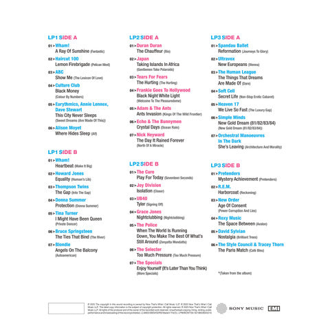 The final LP opens with a superb line-up of tracks from hugely influential albums: Spandau Ballet open with ‘Reformation’ from their 1980 debut ‘Journeys To Glory’, followed by Ultravox with ‘New Europeans’ from ‘Vienna’, The Human League with ‘The Things That Dreams Are Made Of’ from 1981’s hit-packed ‘Dare’ and ‘Secret Life’ from Soft Cell’s remarkable debut ‘Non-Stop Erotic Cabaret’. Heaven 17 are up next from ‘The Luxury Gap’ followed by Simple Minds with the title track ‘New Gold Dream (81/82/83/84)’ from their brilliant 1982 album – and Orchestral Manoeuvres In The Dark with ‘She’s Leaving’ from ‘Architecture And Morality’ closes the side…Turning over to the final side, opener ‘Mystery Achievement’ was the final track on the Pretenders debut ‘Pretenders’ released just two weeks into 1980, and second album highlights follow: ‘Harborcoat’ featured on R.E.M.’s ‘Reckoning’, and ‘Age Of Consent’ opened New Order’s second album ‘Power, Corruption And Lies’. The final three tracks are all stellar examples of the era’s most sophisticated pop; Roxy Music’s 1982 ‘Avalon’ included ‘The Space Between’, and in 1984 David Sylvian released his first solo album ‘Brilliant Trees’, and from it the outstanding and atmospheric ‘Nostalgia’ shares a jazz-influence with the final track, a collaboration between The Style Council & Tracey Thorn ‘The Paris Match’ taken from The Style Council’s 1984 album ‘Café Bleu’.