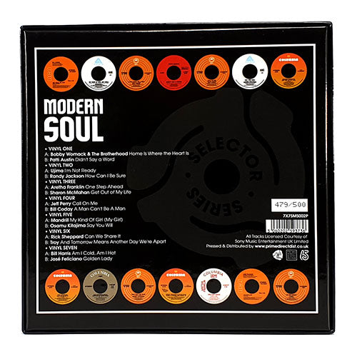 A soul essential! The next 7 x 7 Inch box set unearthed from the vaults of Sony Music containing 14 super-rare, remastered Modern Soul tracks from the Columbia, Epic, Arista and RCA labels including Bobby Womack, Patti Austin, Mandrill, Aretha Franklin, Ujima, Randy Jackson and Jeff Perry to name a few - all presented with the best possible reproduction of the original labels.