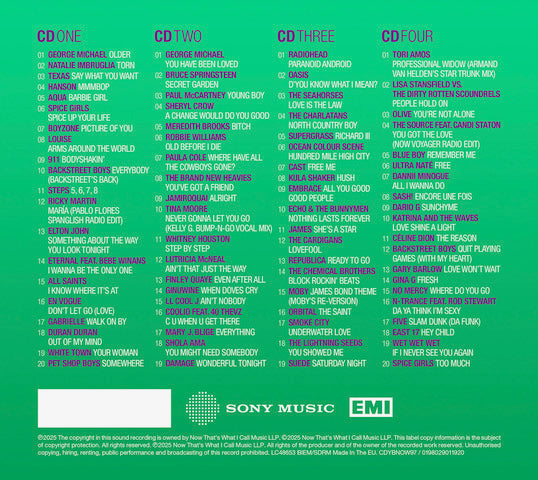 CD1 kicks off in style, with the stunning jazz-drenched ballad from legend George Michael, ‘Older’, before Natalie Imbruglia's huge debut single ‘Torn’. Texas scored a UK top 5 with ‘Say What You Want’ and Hanson hit the US & UK #1 with ‘MMMBop’. ‘Barbie Girl’ from Aqua and the Spice Girls’ anthemic ‘Spice Up Your Life’ were both #1s and lead a run of pure pop including Boyzone (‘Picture Of You’), Louise (‘Arms Around The World’), 911 (‘Bodyshakin’’) and Backstreet Boys (‘Everybody (Backstreet’s Back)’) alongside Steps with their debut ‘5, 6, 7, 8’, and Ricky Martin’s global smash ‘María’. Up next is Elton John’s superb ‘Something About The Way You Look Tonight’ - one half of the biggest selling single of all time. Eternal feat. Bebe Winans hit #1 with ‘I Wanna Be The Only One’ and All Saints made their debut with ‘I Know Where It’s At’. En Vogue’s powerful ‘Don’t Let Go (Love)’ and Gabrielle’s remake of ‘Walk On By’ lead into the discs closing trio: - the atmospheric ‘Out Of My Mind’ from Duran Duran, the genre-blending #1 ‘Your Woman’ from White Town, and Pet Shop Boys’ brilliant version of the musical classic ‘Somewhere’.